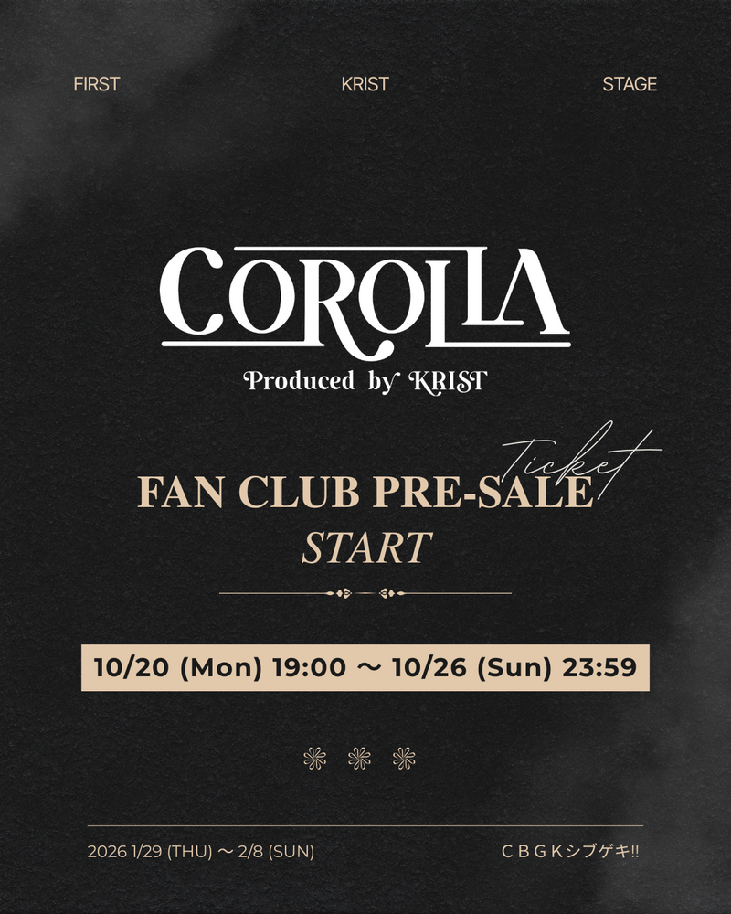 【川原一馬・FC先行発売】 明日20日19時よりFC先行販売開始! 「COROLLA」 Produced by KRIST